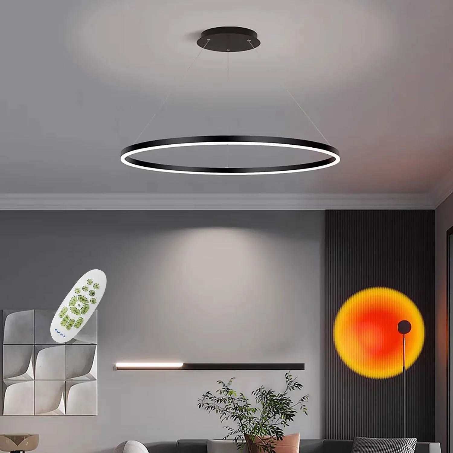 Moderne LED Pendelleuchte Dimmbar mit Fernbedienung, Höhenverstellbar für Esszimmer, Küche & Wohnzimmer, 100 cm, Schwarz