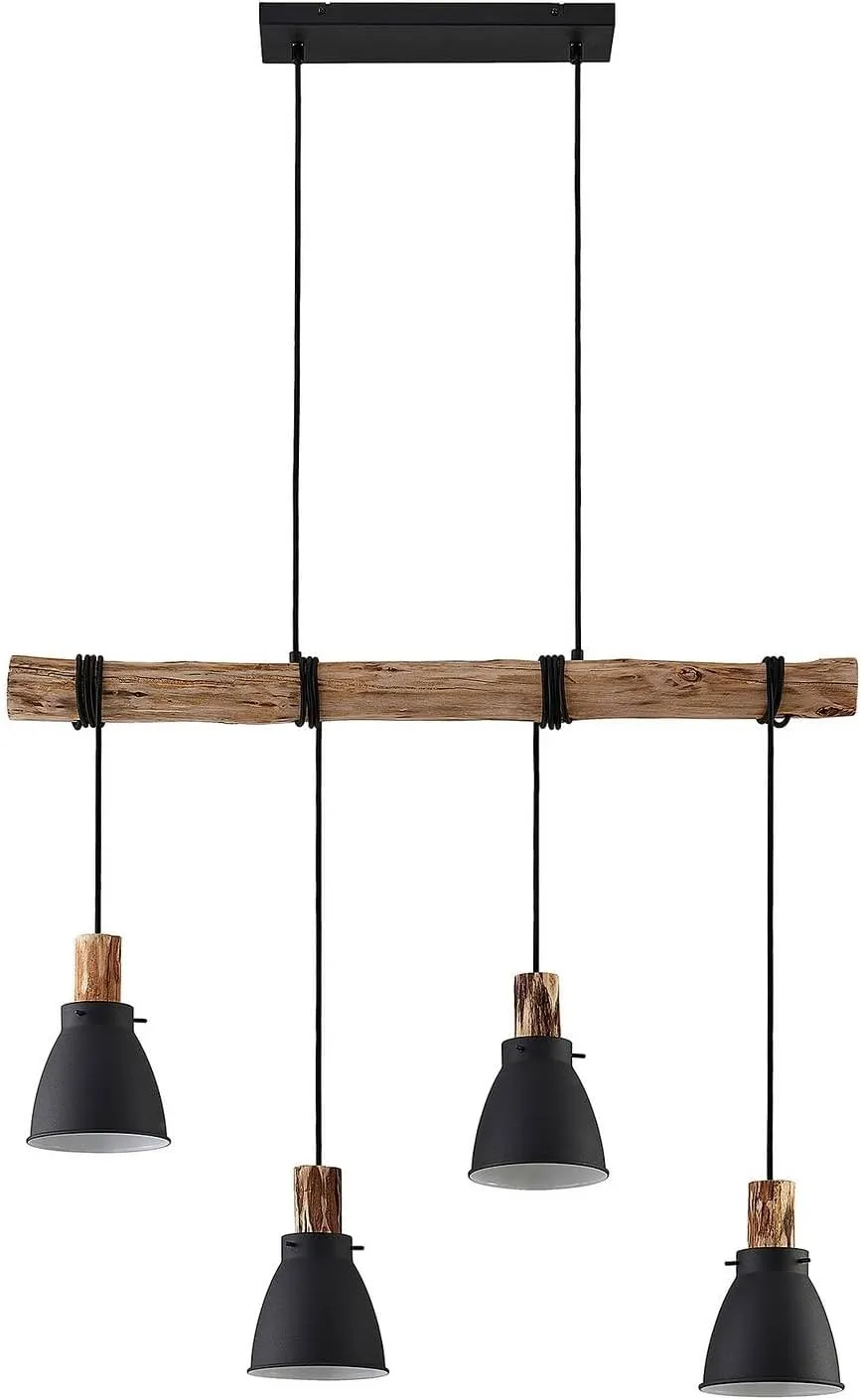 Vintage 4-flammige Pendelleuchte Bardhaman aus Holz und Metall, E27, Schwarz/Natur