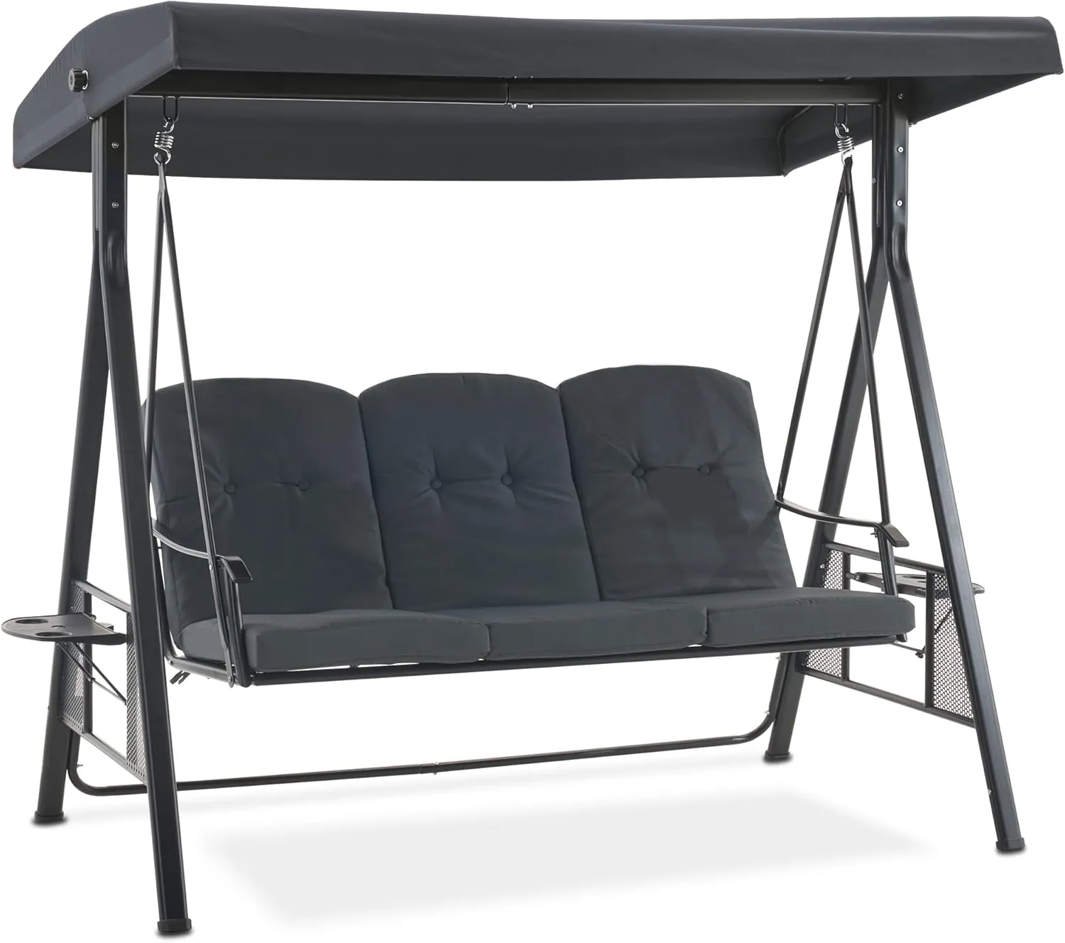 MCombo Dreisitzer Hollywoodschaukel, wetterfeste Gartenschaukel mit Sonnendach, Outdoor Schaukel ohne Liegefunktion, dunkelgrau