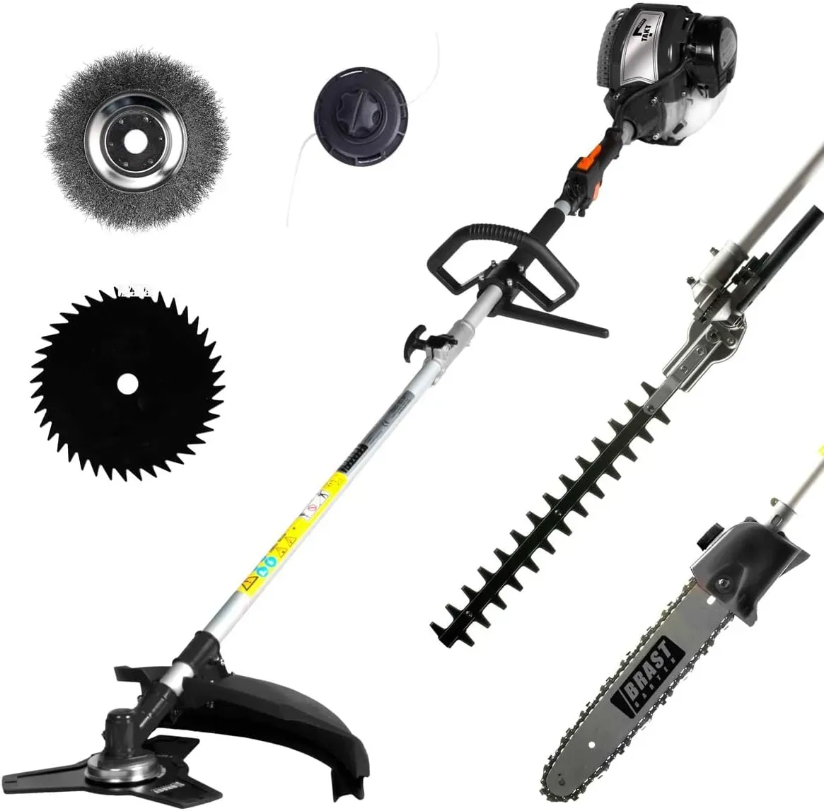 BRAST 4-Takt Benzin 5-in-1 Multifunktionswerkzeug: Motorsense, Heckenschere, Hochentaster, Freischneider