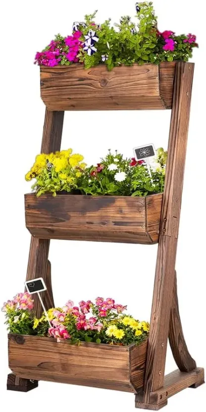 Empasa Hochbeet aus Holz mit 3 Ebenen, 62x47x117 cm für Blumen und Kräuter