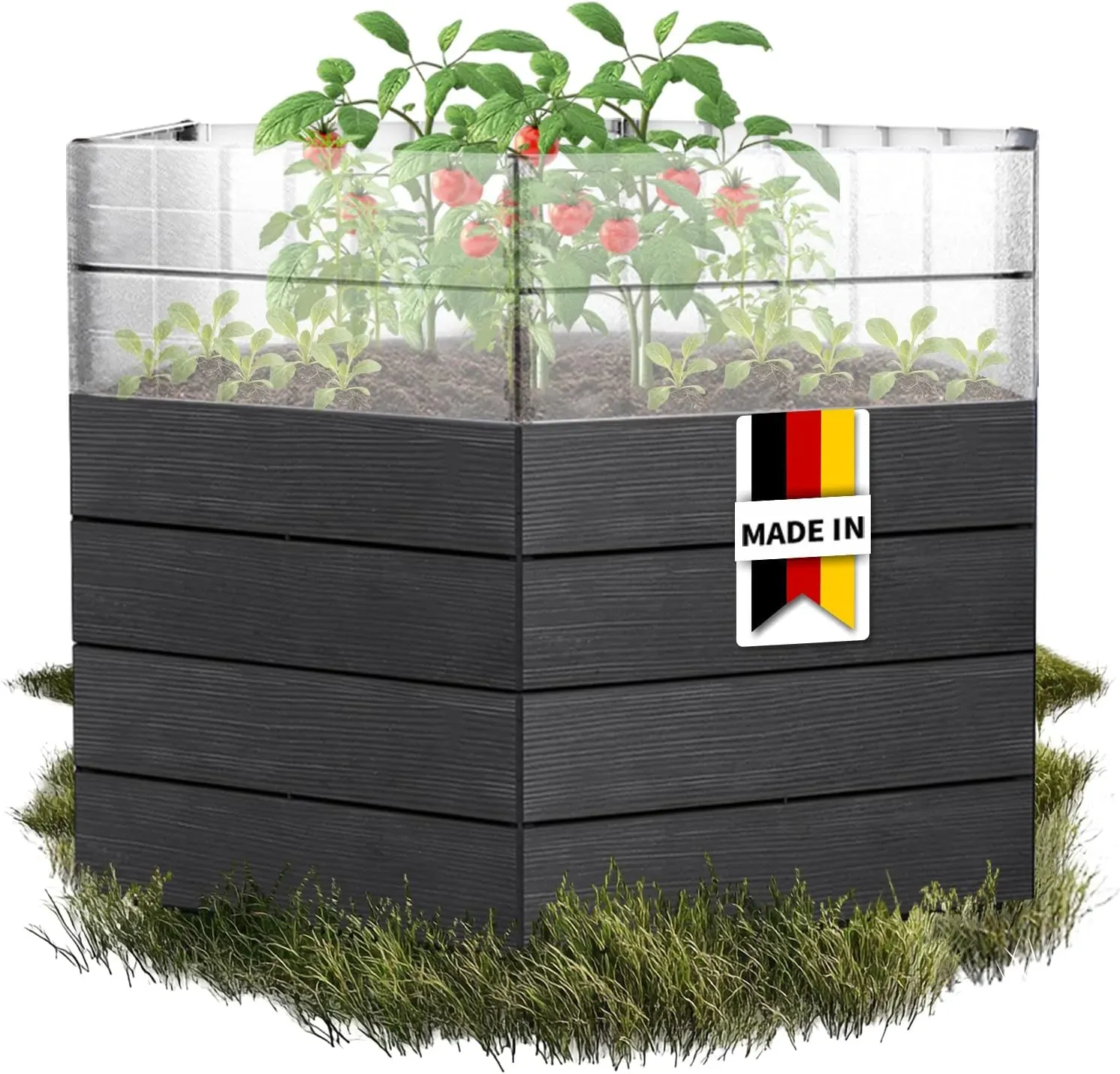 Garantia Modulares Sechseck-Hochbeet L Holzoptik – Großes Kunststoff-Pflanzbeet für Garten – Ideal für Gemüse, Kräuter und Blumen