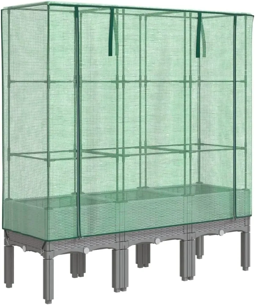 Garten Hochbeet mit Gewächshausaufsatz, Balkon Pflanzkasten in Rattan-Optik