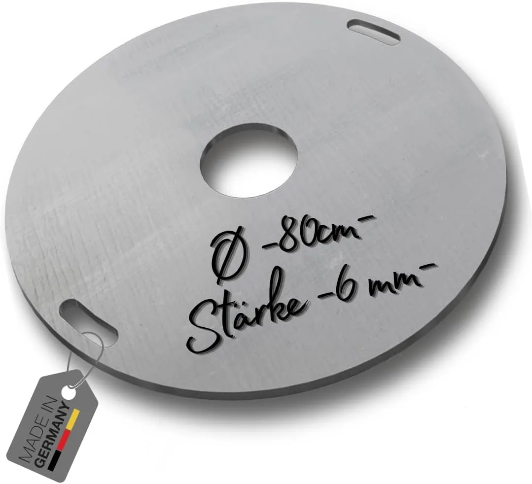 Hochwertige Feuerplatte 80cm, 6mm stark, Herstellung in Deutschland, geeignet für Feuertonne und 200L Fass