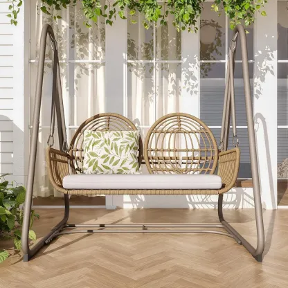 Hochwertige Hollywoodschaukel aus PE-Rattan für den Außenbereich, 2-Sitzer Gartenmöbel inkl. beige Kissen