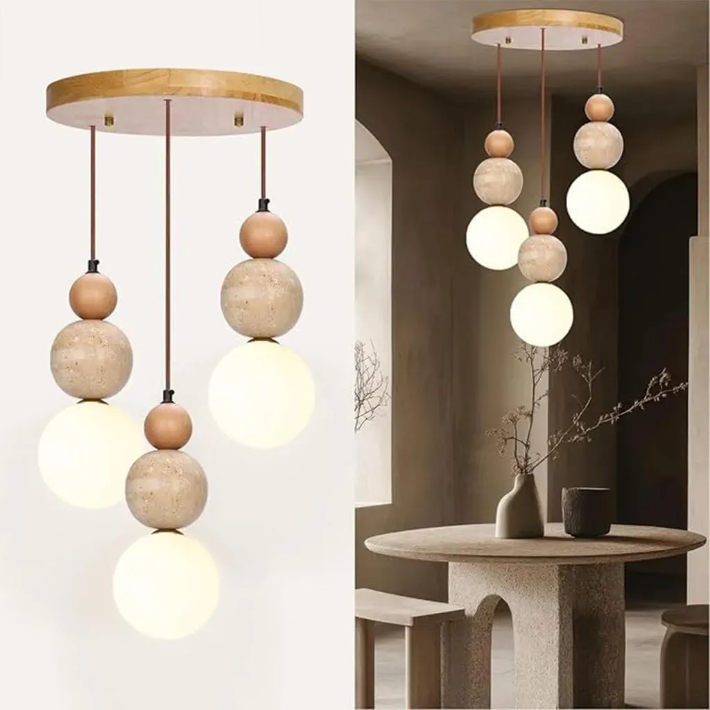 Japandi Pendelleuchte mit 3 Lichtern aus Travertin für Küche und Esszimmer