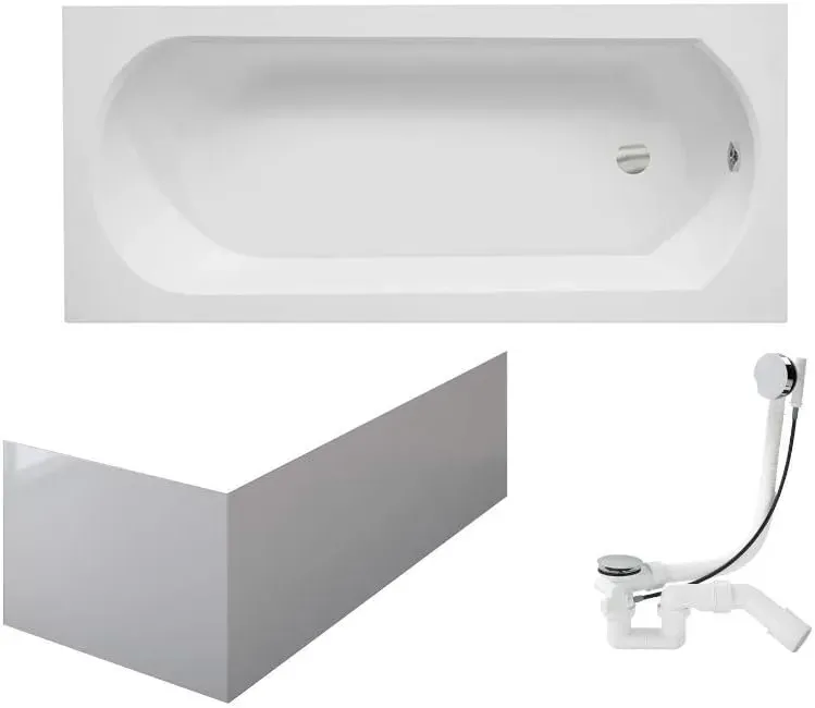 Moderne Rechteck-Badewanne 150x75 cm Acryl mit Schürze und Siphon in Chrom
