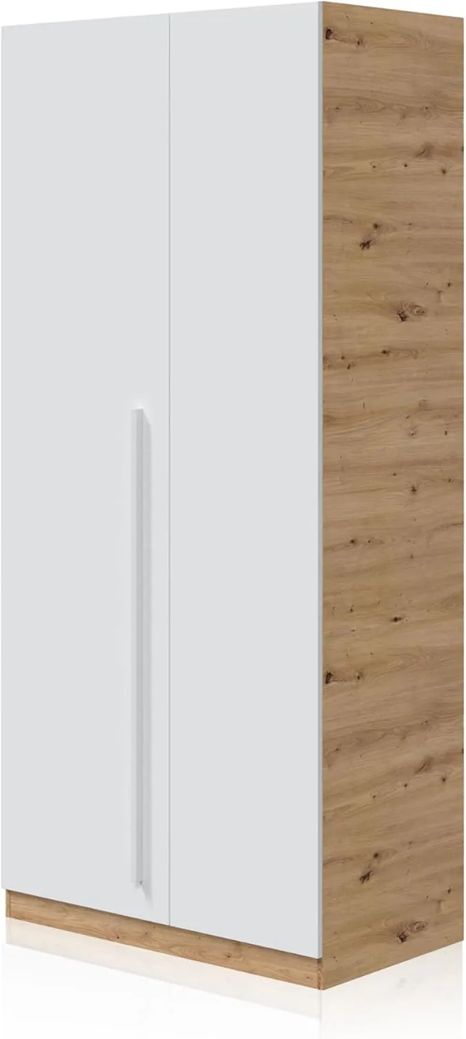 Moderner Arctic-Weiß Kinderkleiderschrank mit Eiche Nodi und 3 Türen – Viel Stauraum, Modell Noa, 90x200x52 cm