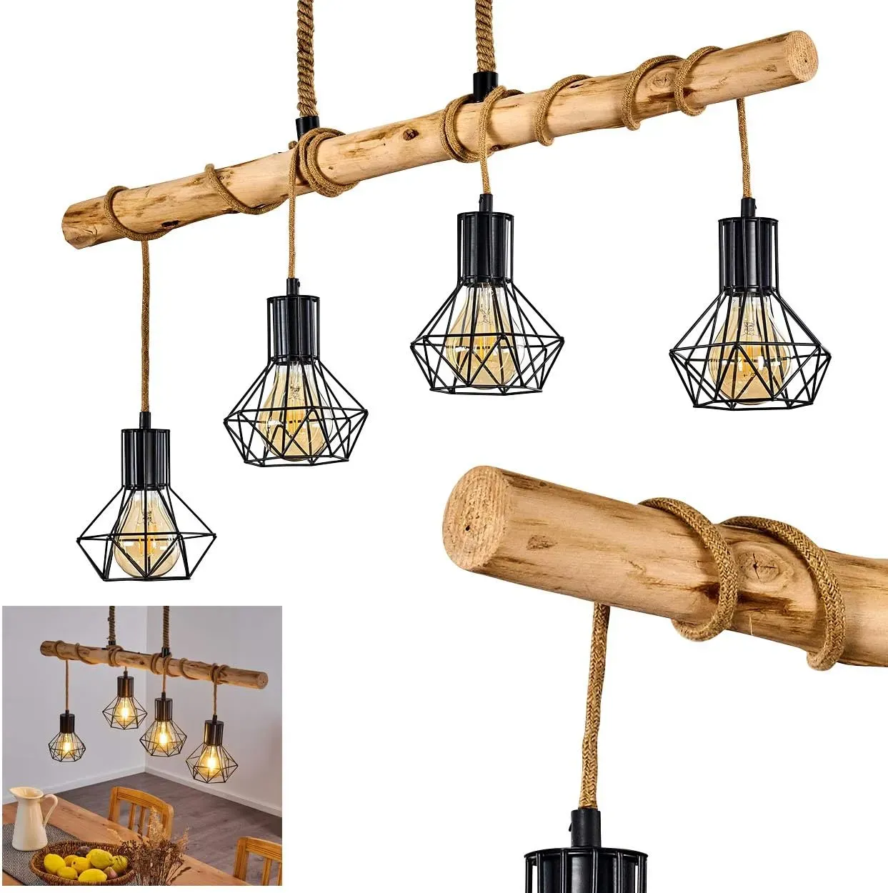 Vintage 4-flammige Pendelleuchte Bardhaman aus Holz und Metall, E27, Schwarz/Natur