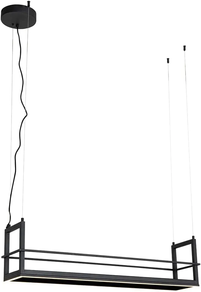 Vintage Industrielle Hängelampe Schwarz mit Dimmbarer LED – Stahl, Rechteckig