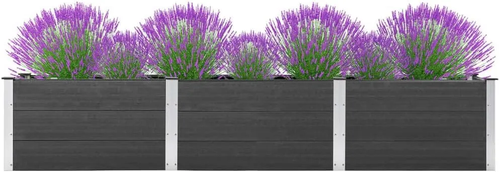 Wetterbeständiges Hochbeet aus WPC, Grau, 300x50x54 cm für Garten