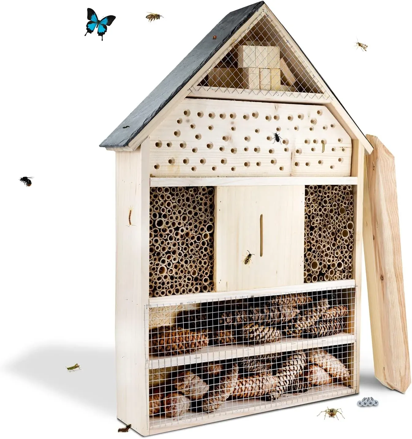 XXL Insektenhotel mit Schieferdach, wetterbeständig, ideal für Bienen und Schmetterlinge